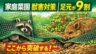 家庭菜園で多い獣害の原因は「ネットの高さ」ではなく足元の隙間。裾・角・出入口など突破されやすい7項目をチェックリストで解説。PDF無料配布中。